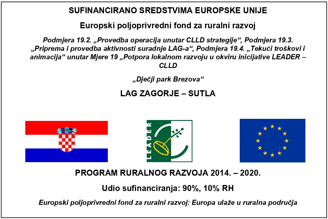 Projekt je usmjeren na izgradnju dječjeg igrališta Brezova. Budući da se na postojećoj lokaciji nalazi neadekvatan i improvizirani prostor za dječju igru, Općina Sveti Križ Začretje ovim projektom uređuje dječje igralište kako bi se udovoljilo potrebama stanovnika, a posebice onih najmlađih te uređenjem dječjeg igrališta stvorio adekvatan, kvalitetan i siguran prostor. Time će se omogućiti i veća kvaliteta provođenja slobodnog vremena djece na otvorenom. Opći cilj projekta je poboljšanje uvjeta i ostvarivanje dodatnih mogućnosti kroz stvaranje kvalitetnog i sigurnog prostora na kojem će se najmlađi stanovnici Brezove i okolnih naselja moći svakodnevno igrati i provoditi vrijeme na otvorenom te, igranjem na rekreacijskoj opremi igrališta, razviti fizičku koordinaciju, snagu i fleksibilnost kroz rekreaciju i zabavu. Na taj način djeca se odmalena potiču na usvajanje sportskih navika i vođenje zdravog i aktivnog načina života.