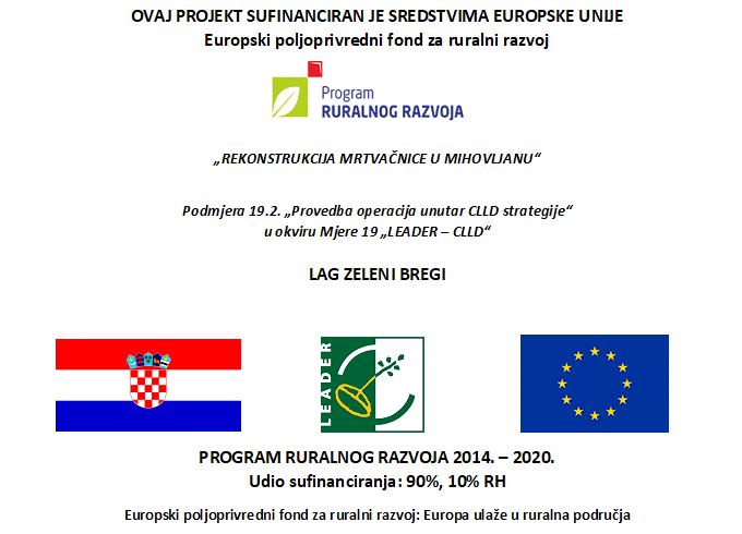 Projekt Rekonstrukcije mrtvačnice u Mihovljanu odnosi se na građevinske radove (rušenje i demontaža, zemljani radovi, betonski i AB radovi, zidarski radovi, izolaterski radovi) te obrtničke radove (keramičarski i podopolagački radovi, soboslikarsko-ličilački radovi, vanjske i unutarnje instalacije).