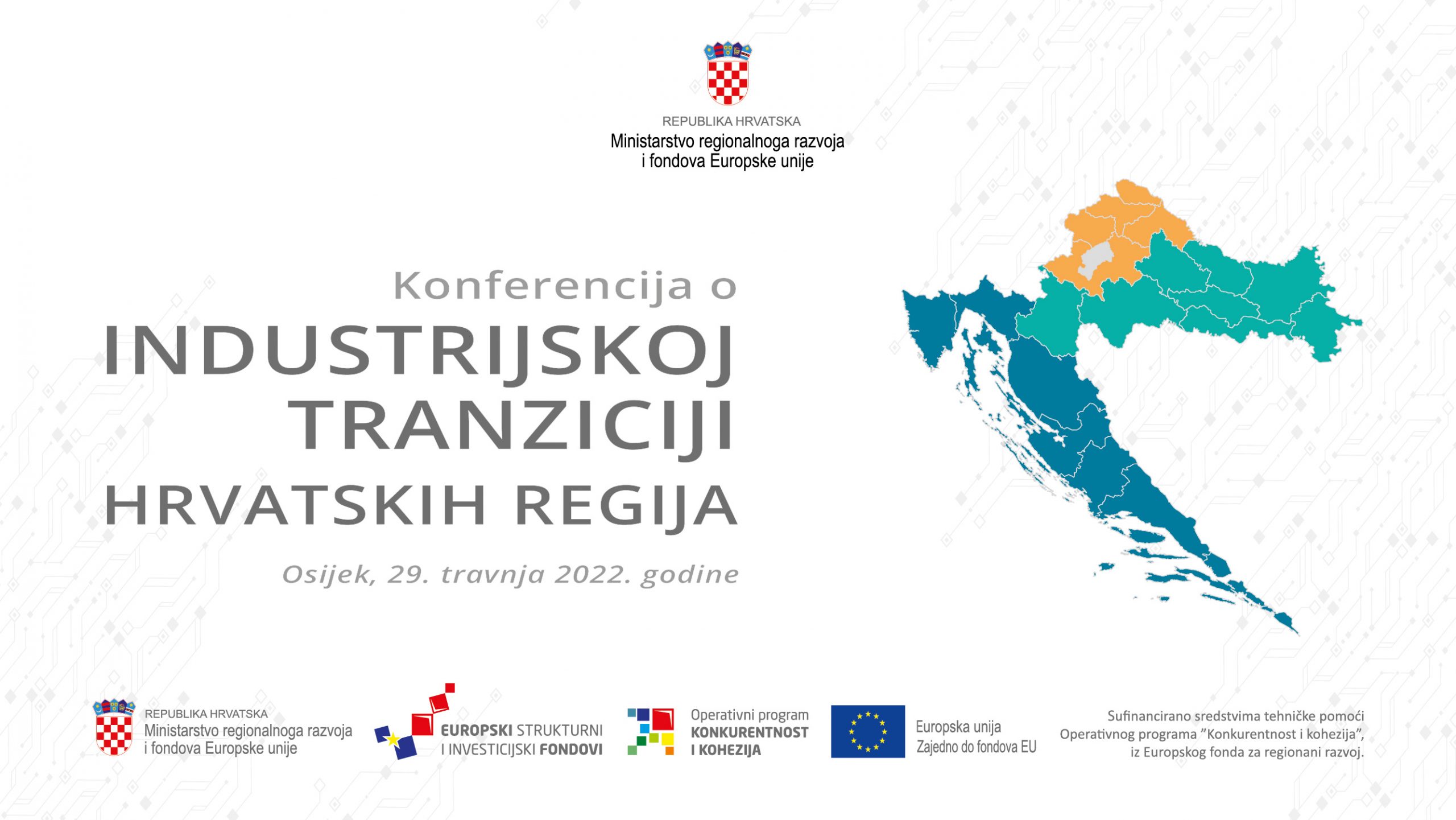 Dana 29. travnja 2022. godine s početkom u 10 sati u Osijeku se održava „Konferencija o industrijskoj tranziciji hrvatskih regija“ koja će okupiti dionike iz javnog i privatnog sektora, s ciljem predstavljanja planova za industrijsku tranziciju te dosadašnjih iskustava i projekata koji će biti uključeni u Industrijsku tranziciju Hrvatske.