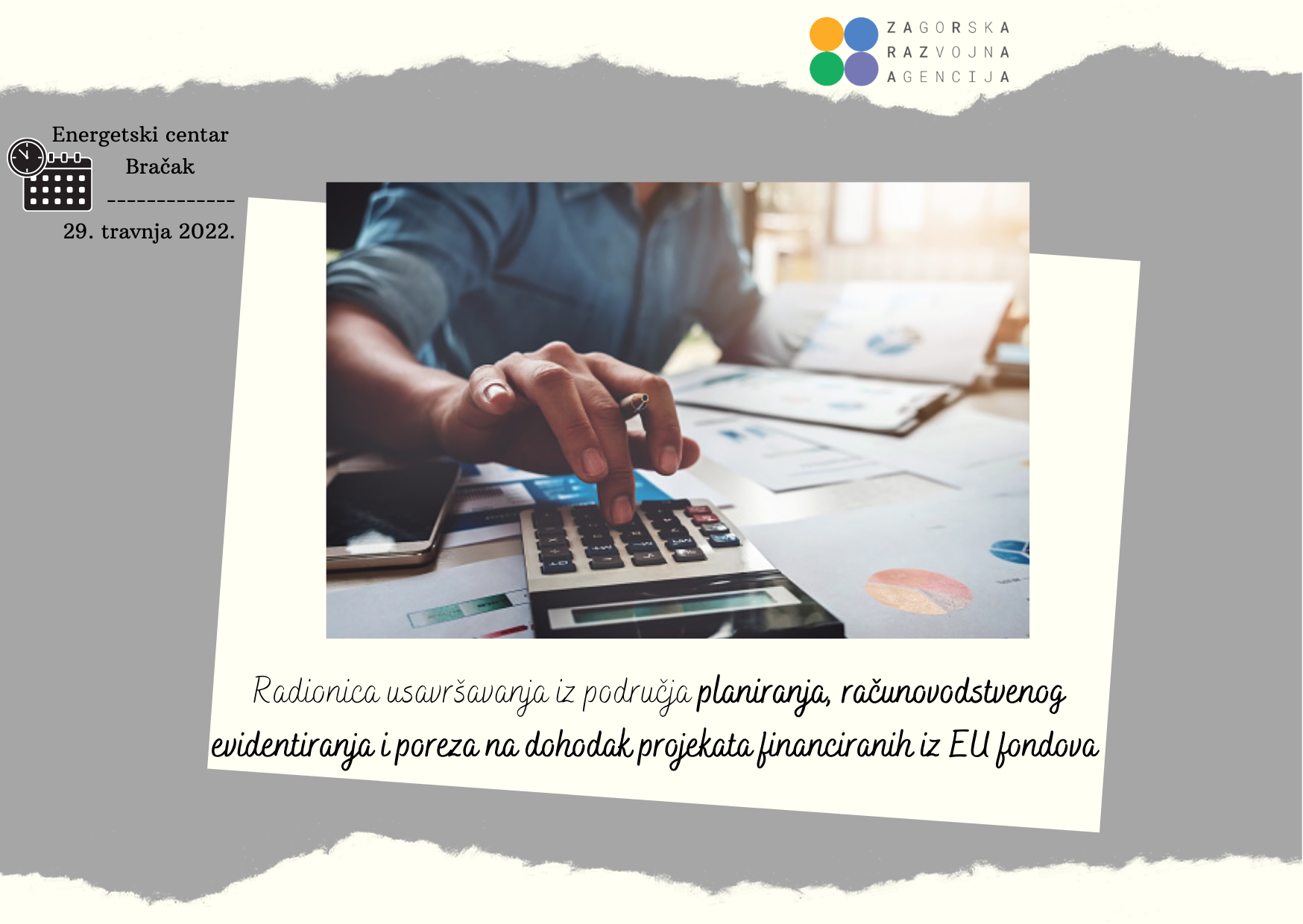Nakon održane radionice usavršavanja iz javne nabave, u okviru provedbe projekta „Znanjem za europsko zajedništvo- ZEZ II“ Zagorska razvojna agencija u Energetskom centru Bračak u petak, 29. travnja 2022. godine, organizirala je radionicu usavršavanja iz planiranja, računovodstvenog evidentiranja i poreza na dohodak projekata financiranih iz EU fondova.